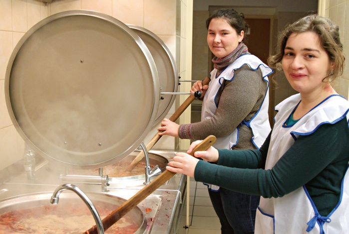 Plan był prosty – w czasie trzydniowych rekolekcji jeden dzień dziewczyny miały poświęcić na pomoc w wybranej przez siebie placówce. Justyna i Ela zapisały się do pracy w kuchni dla ubogich. – Wolontariat nie jest dla mnie czymś nowym – mówi Justyna. – Wiem, że kiedy ci ludzie – najczęściej bezdomni i bardzo biedni – widzą młodych, którzy chcą im pomóc, jest to dla nich niezwykłe przeżycie. Najczęściej doświadczają bowiem różnych przykrości ze strony młodego pokolenia – dodaje. Jej koleżanka Ela nie ukrywa, że do wyboru kuchni przyczyniły się koleżanki. – Ale nie był to jedyny argument, ponieważ interesuję się gotowaniem, lubię to robić i wiem, że w ten sposób mogę pomóc innym – stwierdza.