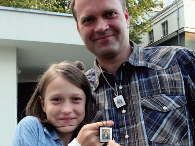 Jedenastoletnia Zuzia Sulej z Warszawy poszła w ślady taty i teraz już oboje noszą szkaplerz.