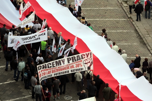 Najliczniejszą grupę stanowią związkowcy "S". Prócz nich są też widoczni zwolennicy Prawa i Sprawiedliwości oraz Solidarnej Polski, sympatycy Telewizji Trwam i Radia Maryja, członkowie klubów "Gazety Polskiej". Manifestanci podkreślają, że protestują przeciw brakowi dialogu społecznego, podnoszeniu wieku emerytalnego oraz w obronie swobód obywatelskich i pluralizmu mediów.