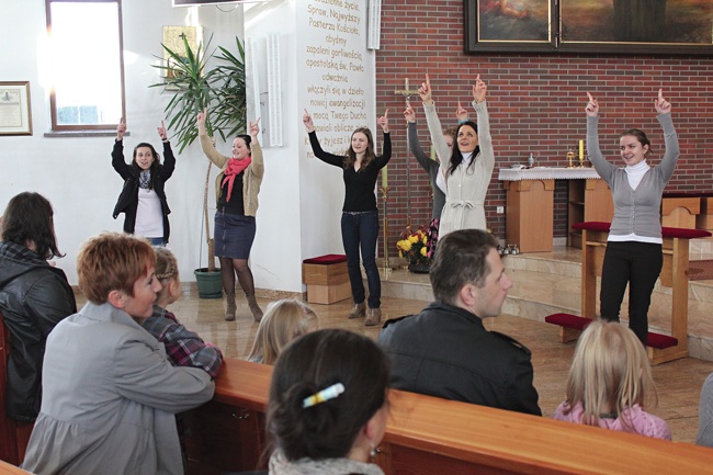 – Przyjechałyśmy tutaj, żeby powiedzieć, że modlitwa może mieć wymiar duchowo-taneczny i że taniec nie jest tylko rozrywką, ale może być także obrazem głęboko przeżywanych emocji związanych z modleniem się, zwracaniem do Pana Boga – mówi Małgorzata Owczarz z „Mocnych w Duchu”. – Dziewczyny były bardzo otwarte. My dawałyśmy z siebie, ale i czerpałyśmy od nich: modlitewnie, tanecznie i... prywatnie. To osoby bardzo dojrzałe, nauczone głębokiej, wewnętrznej modlitwy – dodaje Izabela Woropaj. – To bardzo ważne w praktyce tańca uwielbienia. Taki taniec nie może być teatrem, widowiskiem. Nasze warsztaty zakończyła parafialna Msza św. Zależało nam na tym, by taniec był dla innych zachętą, by się otworzyć i spróbować. By ci, którzy na początku byli tylko obserwatorami, sami poczuli się zachęceni do wykonania pewnych gestów, do przekroczenia wewnętrznej granicy oporu, do dziecięctwa Bożego. Parafianie z Polskich Skrzydeł jeden po drugim przełamywali swoje opory – wielu z nich razem z dziewczynami po raz pierwszy w życiu tańczyło w... murach świątyni._