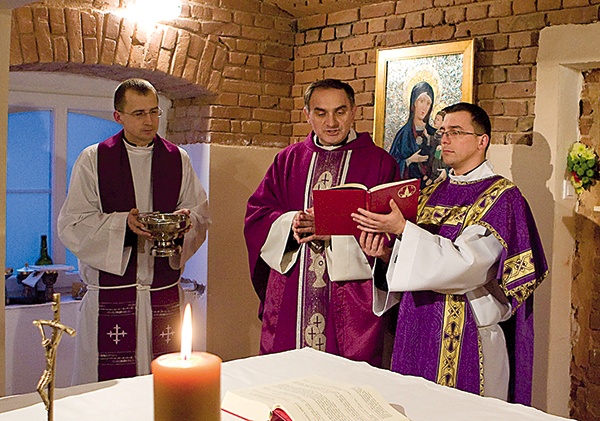 – To jest kaplica tymczasowa, która posłuży nam przez najbliższe kilka miesięcy. Od 6 stycznia rozpoczniemy w tym miejscu adorację Najświętszego Sakramentu. W dzień i w nocy Pan Jezus będzie tu dostępny dla wszystkich – mówi ks. Radosław Siwiński, pomysłodawca i główny motor napędowy powstającego Domu Miłosierdzia. Kaplicę poświęcił ks. dr Krzysztof Włodarczyk, dyrektor Wydziału Duszpasterskiego kurii biskupiej. Przewodniczył także pierwszej Mszy św. odprawionej w tym miejscu. – Powierzamy Jezusowi Miłosiernemu całą historię tego domu. Prosimy, by oczyścił to miejsce ze wszystkiego, co zdarzyło się tu złego, wszystkiego, co było przeciw Bogu i przeciw miłości do człowieka. A także by ożywił wszystko, co działo się tutaj dobrego i na tej bazie budował jeszcze większe dobro – mówił ks. Włodarczyk.