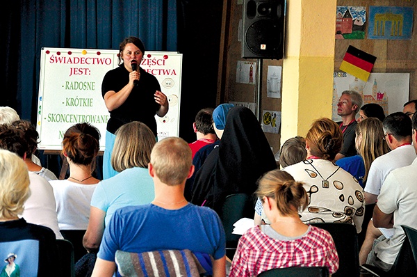 – Czasami ktoś nie jest w stanie od razu przyjąć orędzia: „Bóg cię kocha”. Ale rozmawiając ze mną o normalnych sprawach, zaczyna zadawać pytania: „Skąd u ciebie taka radość?”, „Co sprawia, że tak cieszysz się życiem?”. W końcu dochodzimy do Jezusa – dodaje. – Może z człowiekiem, który pali, nie trzeba zaczynać ewangelizacji od powiedzenia mu, że nie powinien, ale od zapytania, co pali – podaje przykład ks. Rafał. – Na kursie uczymy się właśnie m.in. delikatności, bo nie chodzi nam o przejechanie ludzi walcem Ewangelii – dodaje Magda. – Nabieramy tu po prostu umiejętności, jak mówić, żeby trafiać w sedno. Ewangelizując, nie przedstawiamy przecież jakiejś rzeczy, teorii czy systemu wartości, ale osobę Jezusa Chrystusa – wyjaśnia Agnieszka Zuzelska, dyrektor kursu. – Są tu konferencje, dynamiki i modlitwa, która motywuje do działania. Podczas różnych ćwiczeń jest też możliwość zastosowania zdobytej wiedzy w praktyce – dodaje.
