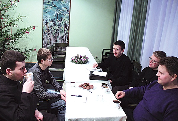 Myliłby się ten, kto pomyślałby, że 4-dniowy pobyt w seminarium grupy młodych mężczyzn ograniczał się do wskazywania kapłaństwa jako jedynej właściwej drogi życiowej. – Rozeznawanie powołania nie zakłada opozycji: służyć Bogu w kapłaństwie i nie służyć Mu, ale być mężem i ojcem rodziny – mówi wicerektor seminarium ks. Piotr Kaczmarek. – Odwiedziła nas rodzina ze Skierniewic. Małżonkowie opowiadali, jak się poznali i jak żyją. A żyją z Panem Bogiem. Wiele decyzji małżeńskich podejmowali po przemodleniu sprawy. Mieli świadomość i przeświadczenie, że pełnią wolę Boga. Ich świadectwo zaprzecza opinii, że służba Bogu to tylko bycie księdzem czy siostrą zakonną. Eucharystia, jutrznia, adoracja Najświętszego Sakramentu, czytanie Pisma Świętego oraz konferencje i rozmowy na życiowe tematy wyznaczały rytm rekolekcji. Dużą pomocą wykazali się klerycy. Kamil Paluchowski czuwał nad sprawami organizacyjnymi. Szymon Smółka, Paweł Gontarz i Damian Mirecki prowa- dzili zajęcia w grupach. Dla Damiana, kleryka pierwszego roku, było to ciekawe doświadczenie. – Dwa lata temu uczestniczyłem w tych rekolekcjach jako uczeń liceum – mówi. – Pamiętam, że nie mogłem odnaleźć się w murach seminarium. Dopiero przedostatniego dnia, kiedy była adoracja, zacząłem zastanawiać się nad wyborem kapłaństwa. Teraz, jako animator rekolekcji, spojrzałem na swoje powołanie z innej strony. Zaskoczyła nas otwartość uczestników. W rozmowach przekazali nam wiele cennych spostrzeżeń.