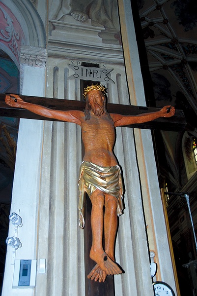Niezwykle wymowny jest także krucyfiks z sandomierskiej katedry. Pochodzi z XV w., początkowo był umieszczony w tzw. tęczy świątyni, czyli przy sklepieniu nad prezbiterum. Jednak później umieszczono go na jednym z filarów. – To niezwykły krzyż, bardzo wyrazisty i przemawiający. Podczas zwiedzania katedry ludzie często podkreślają, że są nim zauroczeni i zachwyceni. Niejednokrotnie spotykam osoby, które po obejrzeniu zabytków sandomierskich wracają tutaj na krótką modlitwę, gdyż – jak często zaznaczają – wizerunek tego Chrystusa dotknął i poruszył ich wewnętrznie – opowiada ks. Zygmunt Gil, proboszcz katedry.