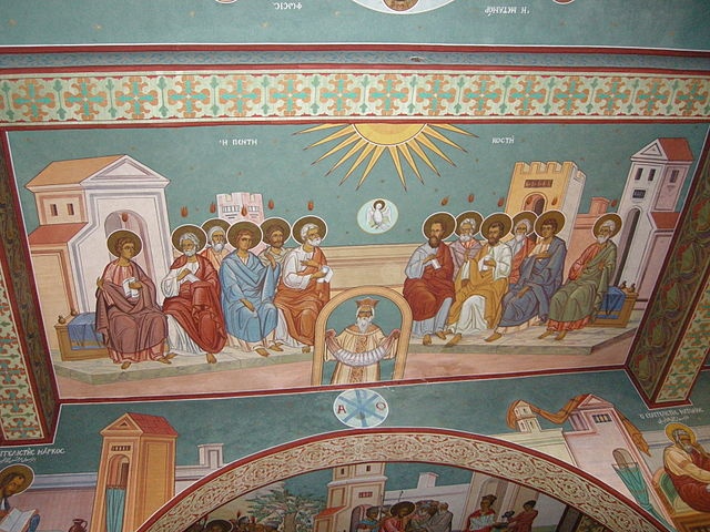 Rzeczywiście fakt Wniebowstąpienia był dla apostołów bardzo przygnębiający. Od tej chwili musieli radzić sobie na ziemi bez fizycznej obecności swojego mistrza. Pamiętali jednak o obietnicy jaką Jezus złożył jeszcze w czasie swojej publicznej działalności .W ewangelii św. Jana wielokrotnie zapewniał ich, że nie zostaną sierotami, ale napełni ich Pocieszyciel, którego „ świat przyjąć nie może”. Zauważmy, że Duch Święty zstępuje na apostołów w dniu Szawuot. Apotołowie będący ortodoksyjnymi Żydami upamiętniali w ten sposób nadanie Dekalogu na górze Synaj. Zesłanie Ducha Świętego jest tym samym wypełnieniem obietnicy Ojca w Nowym Testamencie. To fascynujące zestawienie znaczenia obu wydarzeń po raz kolejny pokazuje nieogarnioną naturę Boga, objawiającego się w tak różnorodny sposób w swojej jedności. Doskonale obrazuje to troparion, z Weczirni święta Zesłania Ducha Świętego. Jego autorem jest cesarz bizantyjski Leon: