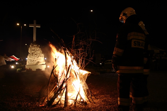 W Nowym Targu watrę zapalono przy niesprzyjającej pogodzie - ciągle padał deszcz, wiał bardzo silny wiatr. - Stajemy przy Bożym ogniu. To też symbol Ducha Świętego. Dziękujemy za nasze chrześcijaństwo, naszą ojczyznę, módlmy się gorliwie o pomyślność dla niej, o pokój i pojednanie - mówił ks. Zbigniew Płachta, proboszcz parafii św. Katarzyny w Nowym Targu.