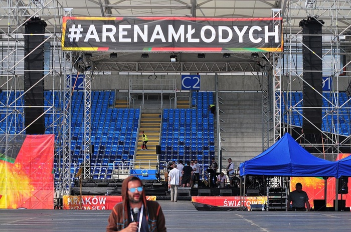 O godz. 13 rozpocznie się widowisko otwierające święto Arena Młodych. Będzie ono dotyczyło prezentacji Lublina. Najpierw zostanie przedstawiona historia miasta, następnie jego rozwój, pojawią się aniołowie zapowiadający liturgię oraz sceny prezentujące przybycie pielgrzymów.