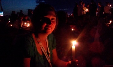 Jest mnóstwo ludzi. Niektórzy powoli się kładą. Mają śpiwory, namioty, ale są też tacy, którzy się bawią. Ogólnie jest spokojnie, bo cała uroczystość była raczej wyciszająca. Staliśmy z zapalonymi świecami, a na koniec śpiewaliśmy po łacinie Apel Jasnogórski.