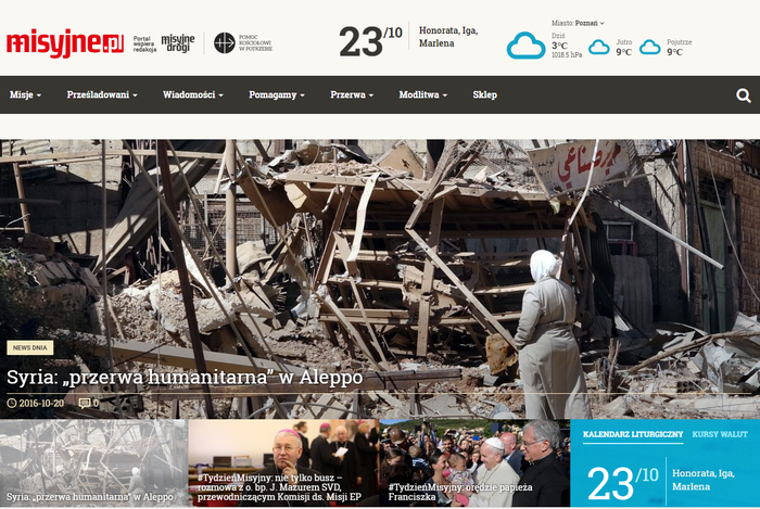 W niedzielę, w Światowy Dzień Misyjny, rozpoczął działalność chrześcijański portal misyjne.pl. Zamierzeniem serwisu jest przekazywanie informacji o misjach, uchodźcach i prześladowaniach chrześcijan.
