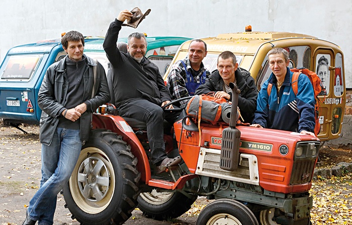 Z czterema podopiecznymi dojechał do sanktuarium w tempie 14 km na godzinę na 27-letnich traktorach z przyczepkami. – Wyruszyliśmy korowodem traktorów, żebyśmy byli widoczni – mówi ks. Tosza. Ewangelizowali nie tylko w kościołach, ale na stacjach benzynowych, przy sklepach, na rynkach. Ktoś, patrząc na kolorowe naklejki z postaciami świętych umieszczone na ich przyczepkach, zapytał, co reklamują. – Pojednanie – odpowiedział.