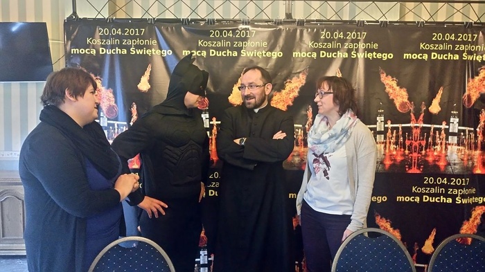 Zaskakującym gościem konferencji prasowej był przedstawiciel Szkoły Nowej Ewangelizacji przebrany za Batmana. Wyjaśnienie znaczenia jego obecności w relacji wideo z konferencji (na ten temat początek: 5.13)