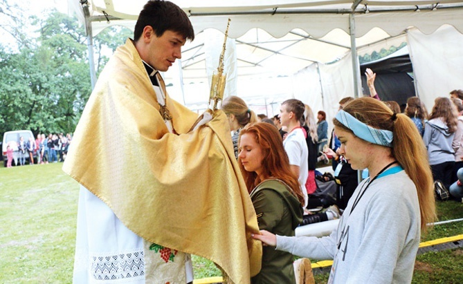 Nadeszła godzina 15, a więc czas, by odmówić Koronkę do Miłosierdzia Bożego. Młodzież zbiera się przed sceną, na którą za chwilę kapłan wniesie Najświętszy Sakrament. Jest ciepło i momentami słonecznie. Spada kilka kropel z nieba, a chwilę później przez Sulistrowiczki przechodzi nagła intensywna ulewa. Pan Jezus w monstrancji przychodzi do młodych, a oni, klęcząc, wpatrzeni w białą Hostię powtarzają: Miej miłosierdzie dla nas i całego świata. Nadeszło oczyszczenie: to naturalne, w postaci wody z nieba, ale i duchowe, czyli miłosierdzie. Także z nieba. Deszcz szybko mija, a zza chmur wychodzi intensywne słońce. Czas na… taniec, czyli energiczne uwielbienie Boga!