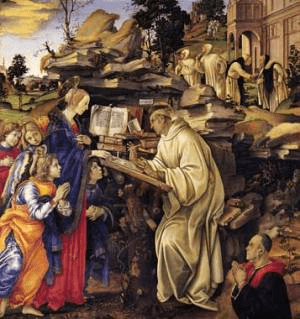 Filippino Lippi, "Wizja św. Bernarda", olej na płótnie, 1486, kościół Badia Fiorentina, Florencja.