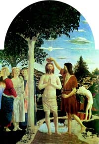 Piero della Francesca, "Chrzest Chrystusa", tempera na desce, 1448-1450, National Gallery, Londyn.