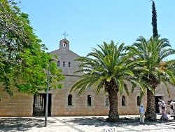 Pierwszym miejscem które zwiedzam w Galilei jest kościół rozmnożenia chlebów i ryb. Warto go zwiedzać rano, zanim przybędą tu tłumnie turyści i pielgrzymi. Kościół zbudowany został na skale przy drodze Via Maris, szlaku łączącym Galileę z Damaszkiem. Pierwszy kościół powstał w tym miejscu ponoć ok. 350 roku, a fundatorem był niejaki Józef z Tyberiady, ale dopiero ten zbudowany w roku 450 w stylu bizantyjskim był trwałym zaznaczeniem dokonanego tu dzieła.