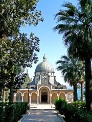 Dookoła kościoła znajdują się ogrody, o które dbają włoskie Siostry Franciszkanki Niepokalanego Serca Maryi. Wokół zaś biegną portyki z kolumnami, skąd rozciąga się piękny widok na otaczające sanktuarium ustronne miejsce w gaju palm, kwitnących właśnie magnolii i fikusów. Całe wnętrze kościoła robi wrażenie lekkości. W samym centrum znajduje się ołtarz o podwójnej mensie, wspierany na czterech brązowych kolumienkach ze złoconymi spiralami w kształcie gałązek oliwnych, nad którym wznosi się smukły łuk z alabastru.