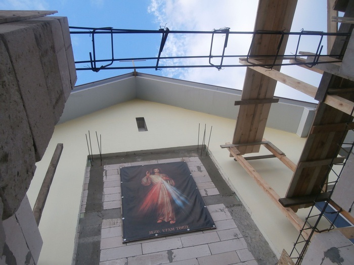 Pracując w tym historycznie tak bardzo polskim miejscu, podjęliśmy się rzeczy po ludzku niemożliwej – budowy kościoła. Dzięki Bożej Opatrzności znalazło się wiele osób, które pomagają nam w tym dziele. W tym roku wybudowaliśmy i otynkowaliśmy wewnątrz oraz ociepliliśmy z zewnątrz styropianem wieżę – dzwonnicę kościoła oraz wybiliśmy dach i wieżę kościoła drewnianą boazerią świerkową, a także dokończyliśmy prace z elektryką i wykonaliśmy uziemienie (piorunochron) kościoła. Całkowity koszt tych prac to ok. 15 tys euro (ponad 60 tys zł). Oprócz tego dzwon i okna w wieży (razem ponad 3 tys euro). To niesamowite osiągnięcie, gdy taca w mojej parafii wynosi 10–12 zł tygodniowo.