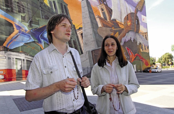 Na Piotrkowskiej w Łodzi wre jak w ulu. Na wystawie księgarni wyeksponowane książki: „Bóg śpi” Marka Edelmana i „Bóg urojony” Dawkinsa. W moim kierunku zbliża się dwoje ludzi. Rozmawiają o meczu Hiszpania–Holandia? O sztuce? Nie. Marzena Kalinowska (plastyczka, z pasją pisząca ikony) i Krzysztof Łatwiński (wiolonczelista, pracujący w Teatrze Muzycznym) zaciskają dłonie na różańcach. W Łodzi od kilku lat działa silna grupa modlitwy za miasto. To ponad 70 osób, które modlą się w tej intencji codziennie, a raz w miesiącu wychodzą na ulice. Proponują niezwykły sposób modlitwy… spacer.