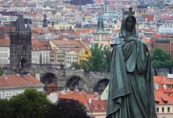 Nie fizyczne podobieństwo jest jednak ważne. Zwróćcie uwagę, że na tym portrecie Agnieszka nie została przedstawiona jako królewna, choć nią była. Korona św. Wacława leży u jej stóp. To świadectwo najważniejszego wyboru, jakiego w życiu dokonała”. Poszliśmy na miasto szukać śladów królewny bez korony.