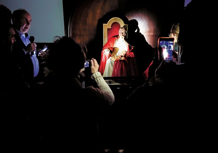 W ciemności słychać odgłos kroków, po chwili rozlega się łagodna muzyka. Na ścianie pojawiają się utrwalone przez kamerę obrazy z życia Jana Pawła II. Brzmią jego słowa. Wzruszenie chwyta za gardło, gdy przy dźwiękach „Barki” snop światła wydobywa z półmroku postać siedzącego papieża. Wygląda jak żywy – swobodny, uśmiechnięty, pełen energii, tak jak w pierwszych latach pontyfikatu. Patrzy na widza z lekkim uśmiechem, a w jego wyrazistym spojrzeniu widać życzliwość i nutkę zawadiackiego humoru. Na ekranie pojawia się kard. Stanisław Dziwisz. „Warto to zobaczyć, bo jest to miejsce spotkania z papieżem” – mówi. Mowa o miejscu, w którym się znajdujemy: „Muzeum Monet i Medali Jana Pawła II” w Częstochowie.