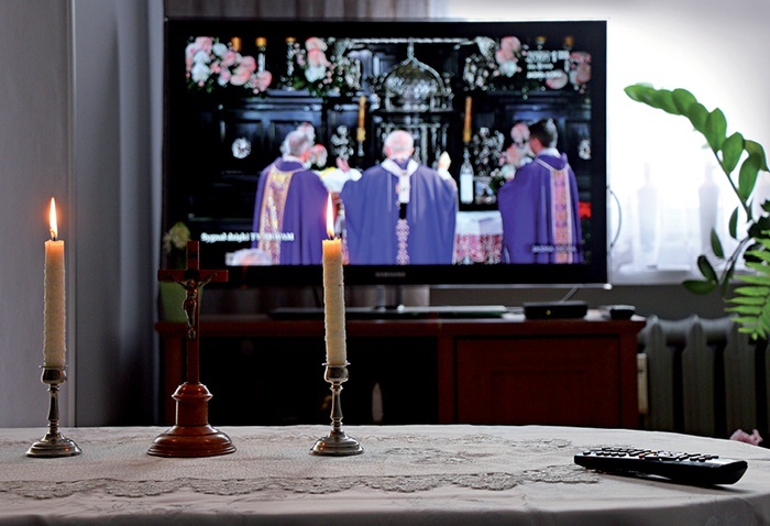 Ongiś, w epoce przedwirusowej, wieścili niektórzy: „Może tak być, że wiernym w kościołach zabraknie kapłanów”. Nikt wtedy nie pomyślał, że może się zdarzyć odwrotnie, czyli tak jak teraz: w kościołach są kapłani, a nie ma wiernych. Wierni siedzą w domach, wpatrzeni w ekrany telewizorów, a na tych ekranach, jak nigdy, potężna oferta duszpasterska. Msza z katedry, Msza z sanktuarium, Msza z parafii, Gorzkie Żale, modlitwa różańcowa, rekolekcje…