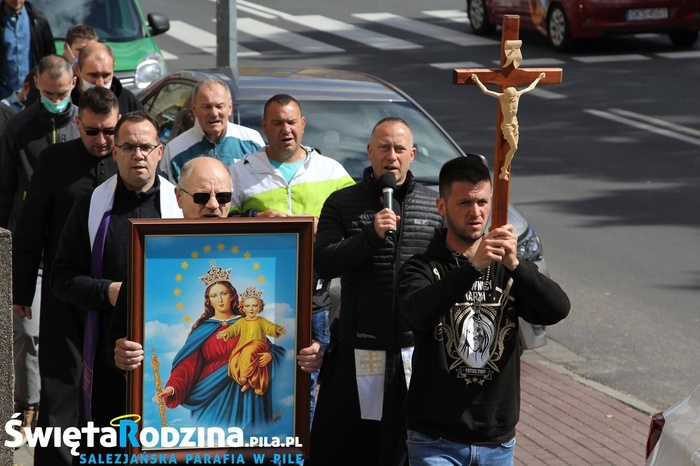 Teraz męska modlitwa wróciła do Piły. W sobotę rano panowie uczestniczyli we Mszy św. i nabożeństwie czerwcowym, potem z różańcami i obrazem Matki Bożej Wspomożycielki Wiernych wyszli na ulice.