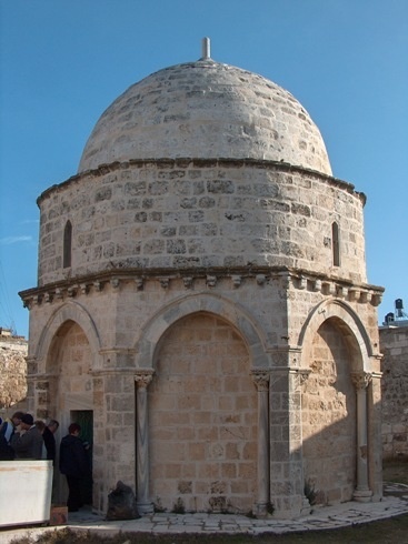 Pierwsze sanktuarium upamiętniające Wniebowstąpienie Pańskie zostało zbudowane pod koniec IV. Obecna kaplica oraz widoczne wokół niej fragmenty murów i filarów pochodzą z czasów Krzyżowców. Po zdobyciu Jerozolimy przez sułtana Saladyna w 1187 roku kościół na szczycie Góry Oliwnej został zburzony, a mała kapliczka upamiętniająca Wniebowstąpienie została zamieniona na meczet. Pielgrzymi, by nawiedzić to miejsce muszą zapłacić bilet wstępu. Tylko w uroczystość Wniebowstąpienia wstęp jest darmowy, a muzułmański meczet staje się ponownie domem modlitwy wspólnoty uczniów zmartwychwstałego i siedzącego po prawicy Ojca Jezusa Chrystusa.