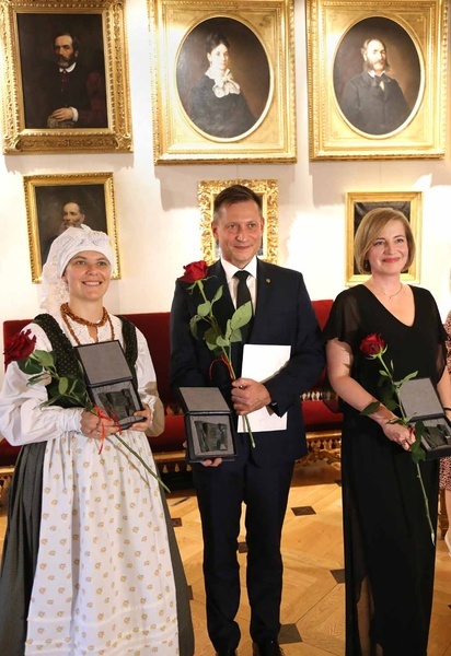 Ubrana w strój ludowy medal odebrała także Katarzyna Chodoń, folklorystka, tancerka i śpiewaczka ludowa, popularna aktorka teatru Złoty Róg, osoba prowadząca od lat folklorystyczne warsztaty, znana w mieście z wielu występów przy różnych okazjach.