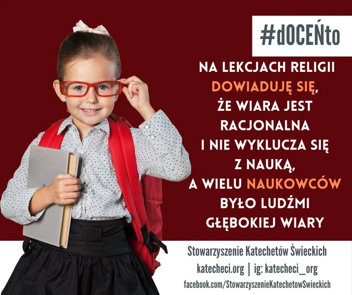 Zapraszamy wszystkich, szczególnie uczniów, ich rodziców i nauczycieli, do włączenia się w akcję #dOCEŃto. Pragniemy w niej ukazać wartość szkolnych lekcji religii i opowiedzieć się za dalszym wliczaniem oceny z religii i etyki do średniej - informują autorzy petycji wspieranej przez Stowarzyszenie Katechetów Świeckich.