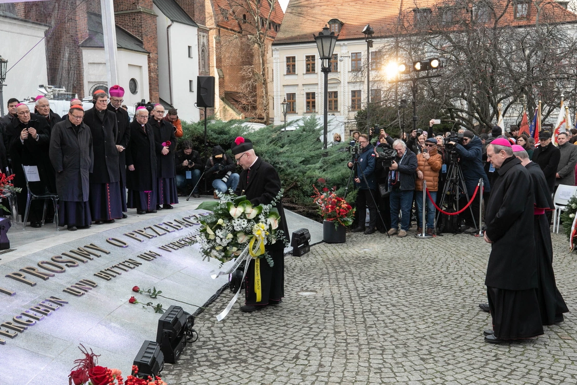W uroczystości wprowadziła konferencja prasowa episkopatów Polski i Niemiec, podczas której gospodarz miejsca abp Józef Kupny mówił o „wizjonerstwie” orędzia z 1965 r., które – jak podkreślił – „uformowało późniejszą zjednoczoną Europę” i nadal może inspirować narody potrzebujące pokoju i dialogu. Hierarcha przypomniał, że „iskra pojednania” wyszła właśnie z Wrocławia, a idea przebaczenia nie jest abstrakcją, lecz możliwą do realizacji postawą codzienności.
